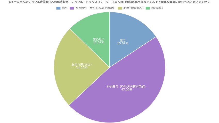 Q3 ニッポンのデジタル政策やITへの構造転換、デジタル・トランスフォーメーションは日本経済が今後浮上する上で重要な要素になりうると思いますか?